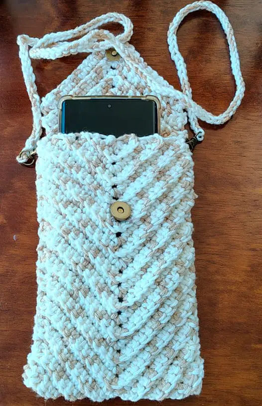 Feito à mão com fios de alta qualidade, este porta celular em crochê artesanal é ideal para quem valoriza o trabalho manual e adora um acessório prático e elegante.