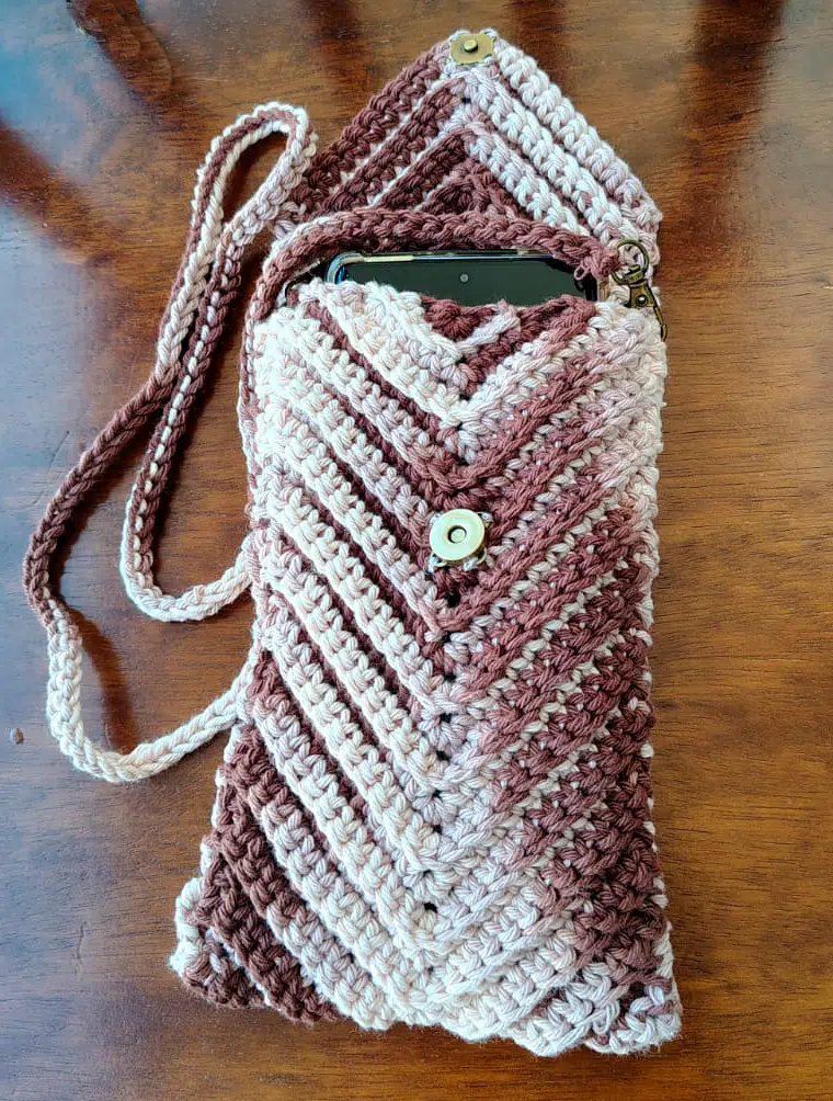 Feito à mão em crochê, esse porta celular é o toque artesanal que faltava no seu dia 💕